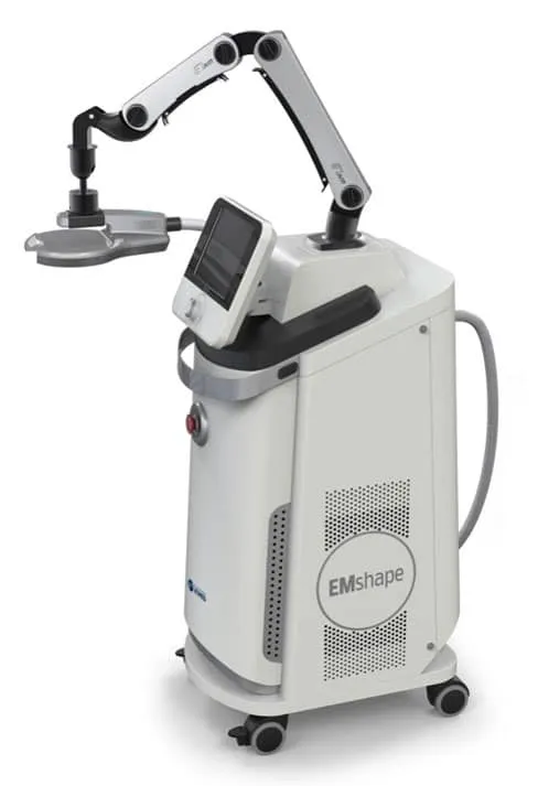EMShape is an innovative machine that achieves fat reduction through intensive muscle contraction and relaxation. This technology offers the dual benefit of reducing fat while encouraging muscle tightening. This process can help reduce fat in a targeted area in a non-invasive manner with no downtime.