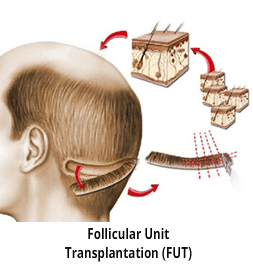 - FUT: In Follicular Unit Transplantation or FUT the doctor selects the donor area near the back of the scalp or the sides of the head. A linear strip is harvested from the center of the permanent zone on the back of the head. The strip is dissected into smaller units known as grafts. These grafts are implanted on the head where there is no hair.